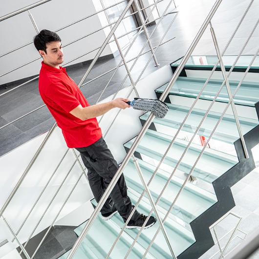 MultiDuster Maxi r-MicroPlus är en tunn och smidig interiör- och elementmopp. MultiDuster är en interiör- och elementmopp som är utvecklad för att enkelt klara av rengöring av svårtillgängliga ytor, t.ex. trång a passager mellan och bakom element och högt placerade ytor såsom lampor och bokhyllor, på ett ergonomiskt och hygieniskt sätt. Används torr för upptagning av damm och lätt fuktar så tar den både fläckar och den osynliga smutsen på djupet. Mikrofibern är tillverkad av 94% polyester/6% polypropylen, baksida av polypropylen. Mikrofibrerna innehåller upp till 70 % återvunnet material. Upp till 99,99 % virus- och bakterie upptagning - med bara vatten. Svanenmärkt enligt Generation 3 - licens 4083 0006. För komplett artikel köp Interiörstativ VILEDA Multiduster Maxi. Mått: 50 cm Material: 94% polyester/6% polypropylen Kortklippt/skuren mikrofibermopp för universell rengöring 70% återvunnen post-consumer material Svanen licensnummer: 4083 0006