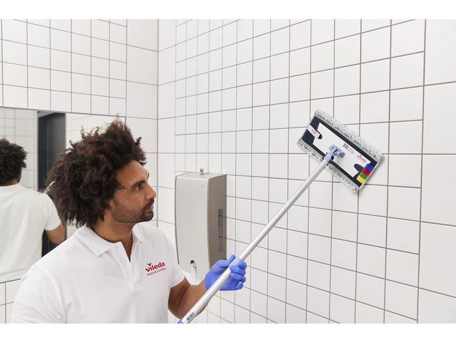 Färgkodad extra bred kardborremopp med skrubbzoner. r-MicroLite Max är en extra bred kardborremopp av skuren mikrofiber. Skrubbzonerna med två viktiga funktioner - lösa upp hårt sittande smuts och att lyfta moppen från ytan för att optimera friktionen De effektiva mikrofibrerna tar både synlig och osynlig smuts och lämnar ett hygieniskt rent resultat efter sig. Symetriska flikar i fram- och bakkant vilket gör moppen extra bred. Bredden tillsammans med den skurna mikrofibern gör att moppen klarar av att hålla mycket fukt, vilket ökar rengöringsytan. Ett brett användningsområde - används torr till dammoppning till fuktig för osynlig smuts t.ex. virus och ingrodda fläckar. Tillverkad av 100% polyester vara av mer än 35% är av återvunnen plast. Tester visar att r-MicroLite klara mer än 500 tvättcykler. Oberoende testinstitut bevisar upp till 99,99% virus- och bakterieupptagning. Extra bred, extra flikar, extra kapacitet Kantsydd och stark kardborre Färgkodad för individuell anpassning Svanen: licensnummer 40830006