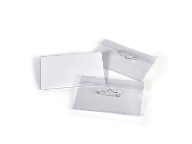 Namnbricka med metallnål och instick för tydlig och säker identifiering av besökare, konferensdeltagare m.fl. Namnbricka 90x50mm med metallnål och instick för tydlig och säker identifiering av besökare, konferensdeltagare m.fl. Tillverkad i PET plast för att kunna användas flera gånger. Alla kemiska substanser i produkten är föremål för registrering i enlighet med REACH. Mått: 90x50mm 50/fp