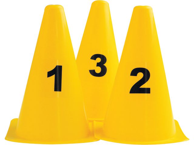 Skapa roliga lekar och övningar med hjälp av dessa färgglada koner och låt siffrorna lägga till en extra dimension av spänning och lärande! Konerna har en siffra tryckt på framsidan för en mängd olika användningsområden inom lek och sport. Setet inkluderar siffrorna 0-9.