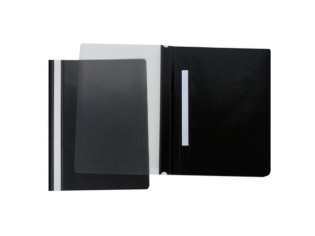 Säker förvaring för viktiga dokument. Offertmapp med genomtänkta detaljer. Stabil mekanik av mässing som rymmer upp till 20 mm papper. Präglade ytor minskar friktion för enkel hantering, och en skrivbar ryggremsa underlättar märkning, blankt papper monterat i ryggficka. Praktisk och funktionell för effektiv dokumenthantering. Använd insticksverktyg för mappar för att enkelt märka upp pappersremsan. Färg: svart Storlek: A4 Kapacitet: pappersbunt på 20 mm Mekanik av mässing Upp till 20 mm pappersbunt Präglade ytor för mindre friktion Skrivbar remsa i rygg Präglad Tjocklek: framsida 0,12mm baksida 0,18mm