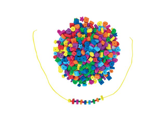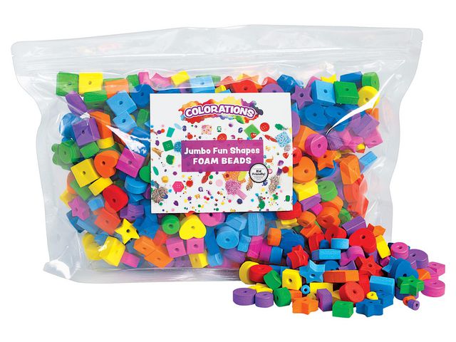 Bra träning för fingermotoriken samt färg och form. Dessa stora, mjuka pärlor är lätta för små händer att hålla och skapa färgglada halspand eller andra skapelser! Glada färger och djärva, roliga, blandade former. Antal: 500st Mått: ca 2x2cm Hål: ca 3mm Material: EVA foam PVC-fri