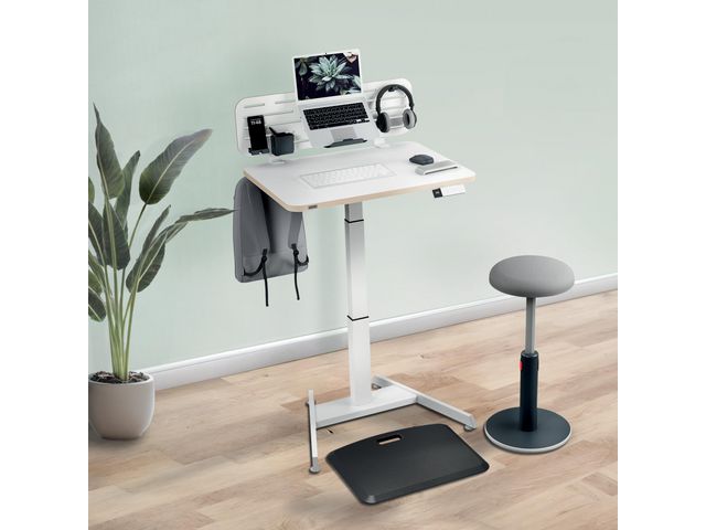 Vertikal förvaring för alla dina dagliga nödvändigheter. Håll ditt skrivbord snyggt och få ut det mesta av det tillgängliga utrymmet med Förvaringstavla för Skrivbord med laptophållare. Denna unika skrivbordsorganiseraren är lätt att montera på ett skrivbord eller bord och kommer att föra din laptopskärm (upp till 15` laptop med ett maxdjup på 245 mm) till den perfekta höjden för att förhindra nack- och ryggsmärtor när du arbetar. Det ger också vertikal förvaring för allt från headset och anteckningsblock till din smartphone och pennor. Två praktiska hängkrokar för en väska eller jacka finns på baksidan av förvaringstavlan. Starka förvaringstillbehör i 85 % återvunnen plast som medföljer (1 x laptophållare, 1 x smartphonehållare, 1 x pennhållare och 1 x hängkrok för ett headset). Konstruerad i Tyskland och kompatibel med de flesta skrivbord med en bordstjocklek på max 35 mm. Förvaringstavlan är gjord av slitstark 8 mm MDF för att säkerställa styrka och stabilitet och mjuka gummikuddar skyddar skrivbordsytan från repor. Vertikal förvaringstavla för skrivbord med laptophållare (80 cm bred och 25 cm hög) Den unika laptophållaren fästs enkelt på förvaringstavlan och höjer din laptopskärm till den perfekta ergonomiska höjden med 2 höjdinställningar (194 mm eller 235 mm) Fyra skrivbordstillbehör ingår, 1 x laptophållare, 1 x smartphonehållare, 1 x pennhållare och 1 x hängkrok för ett headset Kompatibel med de flesta skrivbord med en maximal bordstjocklek på 35 mm Förvaringstavlan är gjord av slitstark 8 mm MDF för att säkerställa styrka och stabilitet Mått 80x25cm exklusive fästklämmor Lätt att installera Det är ett värdefullt tillägg till våra höj- och sänkbara skrivbord