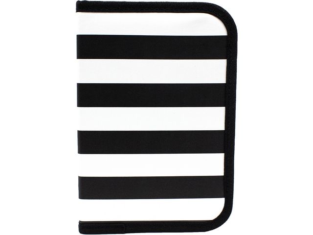 Svart och vitrandigt pennfodral som innehåller 19 olika delar. Tillsammans med fodralet ingår det 10 stycken träfärgpennor, 2 stycken blyertspennor, 2 stycken gelpennor, 2 stycken överstrykningspennor, 2 stycken bläckpennor samt en pennvässare och ett sudd. Antal: 19 olika delar Färg: Svart och vitrandigt Varning. Lämpar sig inte för barn under 3 år CE-märkt