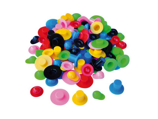 Små hattar och kepsar i många härliga färger. Perfekt vid pyssel och för att dekorera egna figurer och karaktärer som du skapat. Antal: 144 st Höjd: 8-18 mm Ø: 24-35 mm Färg: Svart, Röd, Gul, Blå, Grön, Rosa Material: PS