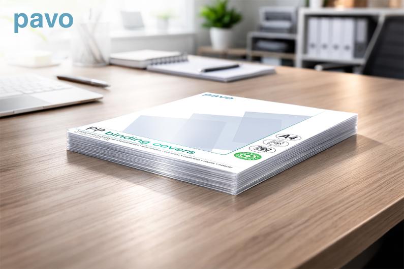 Omslag för spiralbindning med fram- och baksida i plast. Är tillverkat av reflexfri 280 my PP-plast i A4-format.