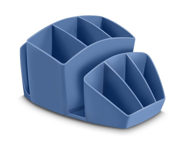 Perfekt för att hålla pennor och skrivbordstillbehör organiserade. Praktiskt prylställ med åtta separata fack för enkel sortering. Den stilrena designen ger ett fräscht och modernt intryck. Kapacitet: 8 fack Färg: blå 94% post consumer återvunnen plast Blue Angel