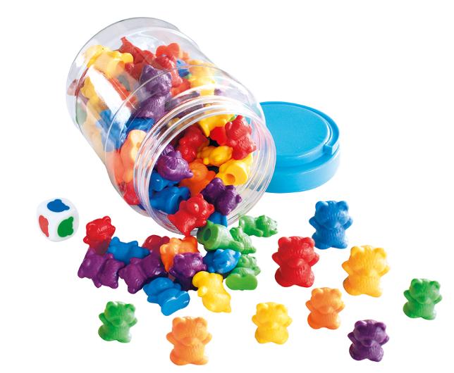 Lekfull färgträning med björnar och tärning! Set med 90 färgglada björnar och en tärning som gör sortering och räkning extra roligt. Perfekt för att öva färger, klassificering och matematiska färdigheter på ett lekfullt sätt. Ett pedagogiskt material som stimulerar både fantasi och inlärning. Antal: 90 björnar + 1 tärning Färger: Blandade färger Mått: Stor björn 2,5 × 1,5 × 3 cm, liten björn 2 × 1 × 2,5 cm Material: TPE Rekommenderad ålder: från 3 år