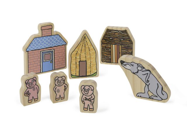 Gör sagorna till en lek! Tillverkad av FSC-furu, robusta och enkla att ställa upp i en mängd olika berättarmiljöer. Dessa engagerande och taktila figurer från berättelsen om De tre små grisarna kommer att göra det möjligt för barn att återberätta historien under självregisserad lek och utforska andra nya versioner av berättelsen de själva skapar. Mått: 50 - 110mm Rekommenderad ålder: från 18månader 100% FSC mix
