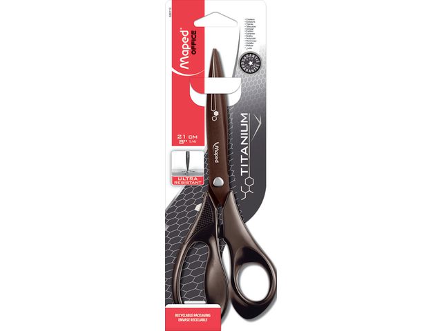 Sax, Maped® Expert Titanium. Titansax med handtag tillverkat av plast. De titanbelagda bladen säkerställer en oöverträffad hållbarhet. Saxen är testad att kunna klippa fler än 150 000 gånger. Längd: 21 cm LIFE TIME GUARANTEE