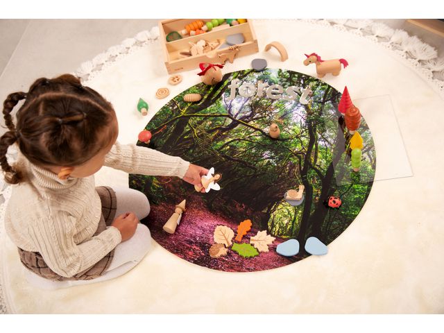 En vacker och färgglad skogslekmatta, tydligt tryckt med detaljerad fotografisk bild av en skogsstig som slingrar sig genom en trädtunnel. Utgör en utmärkt bas för fantasifulla lekscener med våra Förtrollade Träfigurer, Skogsträd och Skogsstigset. Lekmattan passar perfekt inuti vårt Sensoriska Upptäckarbord och kan även användas i vårt Sensoriska Vattenbord eller på vilken plan yta som helst. Tillverkad av hållbar polyester, mattan är slitstark och lätt att torka av - det idealiska tillbehöret för småvärldslek, berättande och sensorisk utforskning. Tack vare sina semitranslucenta egenskaper fungerar lekmattan särskilt bra på en ljuspanel eller stämningsbord då ljuset lyser igenom och lyser upp lav på träden och grenarna. Den valda ljuskällan påverkar mattans utseende på olika sätt: genom att ändra några av landskapets färger, intensifiera färgerna eller till och med få några av färgerna att fluorescera - ett fascinerande sätt att utforska färg medan man leker. Stödjer följande lärandeområden: Expressive Arts & Design - fantasifull lek Kommunikation & Språk - beskrivande språk Personlig Utveckling - samarbetslek Förståelse av Världen - utforskning Mått: 625 mm i diameter Material: Polyester Rekommenderad ålder: från 2 år