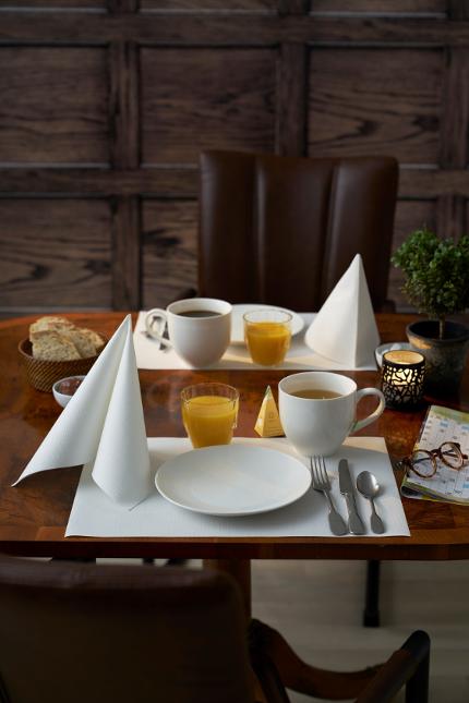 Middagsservett Dunilin Vit 40x40cm. Våra högkvalitativa servetter med linnekänsla. Mycket dekorativa. Mjuka och perfekta till servettvikning, enkla att bryta. Finns i flera olika färger och designs.