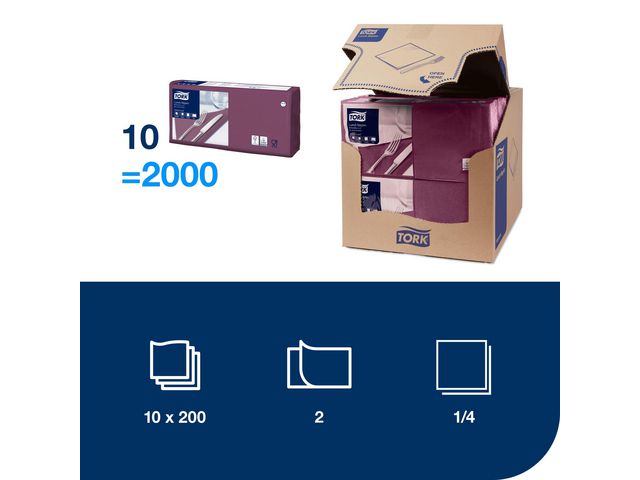 Servetter i lunchstorlek som möter funktions- och kostnadskrav, perfekta för lättare måltider eller snacks. Uppfyll dina krav på funktion utan att överskrida budgeten med Tork Lunchservetter i två lager. Den praktiska lunchstorleken är perfekt för miljöer där lättare måltider eller snacks serveras. Den kraftigare konstruktionen i dessa restaurangservetter gör dessutom att de är absorberande nog för att snabbt och enkelt torka upp spill från mat och dryck. Mixa och matcha bland flera moderna och klassiska färger för en personlig dukning. 2-lagers, lila Antal: 200st/fp Advanced-kvalitet Vikt storlek: D 16.4 cm x B 16.3 cm Ovikt storlek: D 32.8 cm x B 32.5 cm FSC-märkt EU Ecolabel: licensnummer SE/004/001