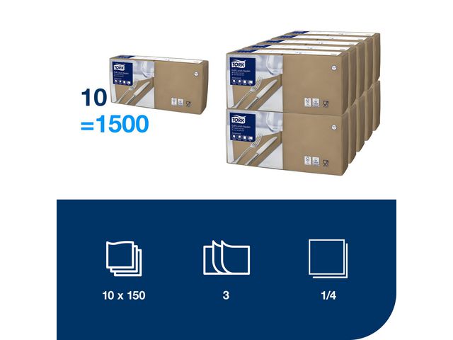 Tork Mjuk lunchservett, högabsorberande 3-lagerskonstruktion - perfekt för lättare måltider. Ta enkelt hand om spill tack vare den överlägsna absorptionsförmågan hos Tork Mjuk Lunchservett i tre lager. Med dessa restaurangservetter överskrider du inte din budget och storleken är perfekt för servering av lättare måltider eller snacks. Dess höga kvalitet och tjocklek gör att du tryggt kan möta gästernas lunchbehov. Med ett brett urval av moderna och klassiska färger kan du enkelt matcha servetter efter inredning och smak. Engagera kunderna med eget tryck – 75% av användarna läser meddelandet på servetten. Antal: 150st/fp 3-lagers, beige Advanced-kvalitet Vikt storlek: D 16.4 cm, B 16.3 cm Ovikt storlek: D 32.8, B 32.5 cm 1/4-vikt FSC MIX Livsmedelsgodkänd EU Ecolabel: licensnummer SE/004/001