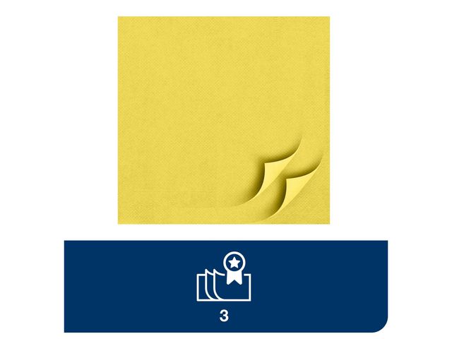 Tork Mjuk lunchservett, högabsorberande 3-lagerskonstruktion - perfekt för lättare måltider. Ta enkelt hand om spill tack vare den överlägsna absorptionsförmågan hos Tork Mjuk Lunchservett i tre lager. Med dessa restaurangservetter överskrider du inte din budget och storleken är perfekt för servering av lättare måltider eller snacks. Dess höga kvalitet och tjocklek gör att du tryggt kan möta gästernas lunchbehov. Med ett brett urval av moderna och klassiska färger kan du enkelt matcha servetter efter inredning och smak. Engagera kunderna med eget tryck – 75% av användarna läser meddelandet på servetten. Antal: 150st/fp 3-lagers, gul Advanced-kvalitet Vikt storlek: D 16.4 cm, B 16.3 cm Ovikt storlek: D 32.8, B 32.5 cm 1/4-vikt FSC MIX Livsmedelsgodkänd EU Ecolabel: licensnummer SE/004/001