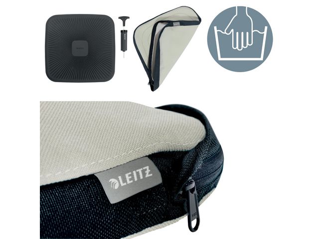Leitz Ergo Aktiv Wobble-kudde med överdrag är den perfekta sittdynan för en bekväm och aktiv arbetsyta Den uppblåsbara sittdynan är utformad för att användas på alla stolar och hjälper till att stärka ryggen genom att skapa mikrorörelser för att hålla balansen när du sitter. Den IGR-certifierade sittdynan förbättrar blodcirkulationen och avlastar ryggraden för att minska obehag som orsakas av långvarigt sittande eller hälsoproblem som ischias. Kvadratisk form för förbättrad ergonomi tack vare större sittyta jämfört med vanliga runda sittdynor och ger korrekt positionering på stolen. Med sin minimalistiska design kan denna eleganta ortopediska sittdyna ha en positiv inverkan på välbefinnandet genom att enkelt skapa den perfekta aktiva arbetsuppsättningen. Kombinera med andra Leitz Ergo-produkter för en inbjudande och flexibel arbetsyta som hjälper dig att vara aktiv och produktiv hela dagen. Kvadratisk form för förbättrad ergonomi tack vare större sittyta jämfört med vanliga runda sittdynor och ger korrekt positionering på stolen Kompatibel med alla stolar för maximal komfort på din arbetsplats Kan bidra till att minska obehag, trötthet och stelhet som kan uppstå vid långvarigt sittande och hälsotillstånd som ischias Förbättrar blodcirkulationen och kan avlasta ryggraden genom att skapa mikrorörelser för att bibehålla balansen och minimera kontakten mellan svanskotan och stolen Sttkuddens överdrag kan tas bort och kan handtvättas för hygien Kan bära upp till 150 kg när den placeras på en stol Testad och rekommenderad av tyska IGR Institute for Health and Ergonomics, enligt DIN 26800 EN ISO 15537 Idealisk för användning hemma eller på kontoret med en helt mobil lösning Levereras med luftpump Plastfria förpackningar Leitz Ergo-serien kombinerar stil med premiumkvalitet för att skapa en ergonomisk och aktiv arbetsmiljö