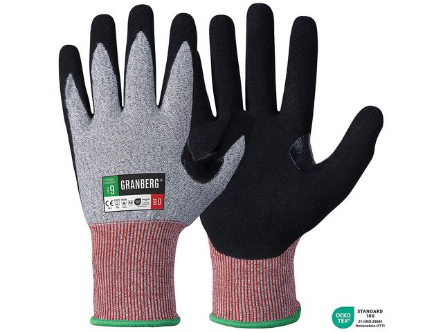 Skärskyddshandskar lämpliga för arbete inom montering, transport, underhåll, industri, anläggning och lager i torra eller oljiga miljöer där vassa material eller verktyg hanteras. Det tunna materialet (18 gauge) gör handskarna extra välsittande och ger mycket god fingerkänsla för precisionsarbete. De har även tumrotsförstärkning för extra hållbarhet och säkerhet. Typhoon®-materialet ger 360° skydd mot skär och de skyddar även mot kontaktvärme upp till 100°C i 15 sekunder. Den sandaktiga nitrilbeläggningen ger ett bra oljegrepp. Handskarna har mycket bra rivhållfasthet och nötningsmotstånd. Touch screen kompatibla. Produkten är CE-märkt samt Oeko-Tex certifierad. Passande branscher: Bilindustri & bilmek Bygg & anläggning Skogsbruk Glashantering Underhåll Olja, gas & gruvdrift Papper & massa Stål- & metall Avfall/återvinning Skyddsklass: II Material: Typhoon, nitril CE-märkta Storlek: 6 Godkända enligt: EN 388:2016+A1:2018 4X43D, EN 407:2020, EN ISO 21420:2020 Oeko-Tex Standard 100: 21.HNO.59941 Hohenstein HTTI. www.oeko-tex.com