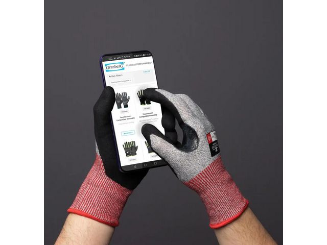Skärskyddshandskar lämpliga för arbete inom montering, transport, underhåll, industri, anläggning och lager i torra eller oljiga miljöer där vassa material eller verktyg hanteras. Det tunna materialet (18 gauge) gör handskarna extra välsittande och ger mycket god fingerkänsla för precisionsarbete. De har även tumrotsförstärkning för extra hållbarhet och säkerhet. Typhoon®-materialet ger 360° skydd mot skär och de skyddar även mot kontaktvärme upp till 100°C i 15 sekunder. Den sandaktiga nitrilbeläggningen ger ett bra oljegrepp. Handskarna har mycket bra rivhållfasthet och nötningsmotstånd. Touch screen kompatibla. PProdukten är CE-märkt samt Oeko-Tex certifierad. Passande branscher: Bilindustri & bilmek Bygg & anläggning Skogsbruk Glashantering Underhåll Olja, gas & gruvdrift Papper & massa Stål & metall Avfall/återvinning Godkända enligt: EN 388:2016+A1:2018 4X43D, EN 407:2020, EN ISO 21420:2020 Oeko-Tex Standard 100: 21.HNO.59941 Hohenstein HTTI. www.oeko-tex.com CE-märkt Skyddsklass: II Material: Typhoon, nitril Storlek: 8