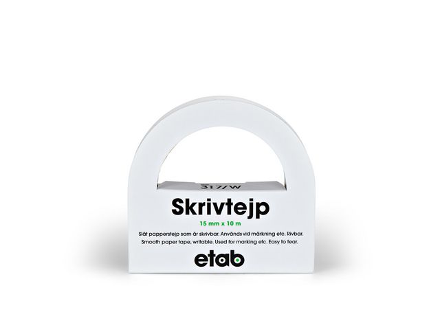 Skrivtejp av papper 15mmx10m vit. Slät papperstejp med impregnerat papper med gummibaserat häftämne. Matt yta. Rivbar, antistatisk, tryckbar och skrivbar. nvänds som frystejp, bokbinderitejp och skrivtejp. Även lämplig för användning som ateljétejp, montering på scanners och ljusbord samt vid uppmärkning av mixerbord.