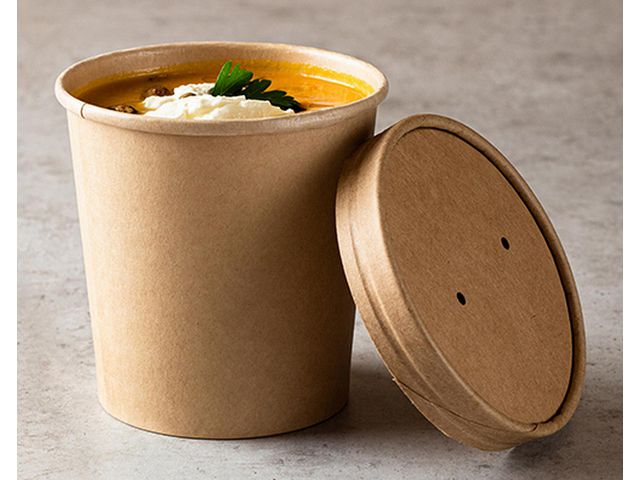 Rund skål av kartong passar till förvaring av soppor etc. Soppskålar av kartong passar utmärkt till hämtmat eller allmän förvaring. Oavsett om du serverar soppor, grytor eller sallader, håller skålarna maten fräsch och varm. Med en smart och hållbar design är de idealiska för både restauranger och hemmet. Tål värme upp till 100 grader. Mikrovågssäker max 2 minuter. Komplettera med tillhörande tätslutande lock för komplett artikel. 25st/fp Färg: brun Volym: 350 ml Diameter: 9,8 cm Höjd: 7 cm Material: papp, PLA-belagd FSC Mix Livsmedelsgodkänd
