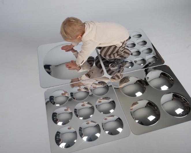 Upptäck Magiska Reflektioner – Spegeln som Inspirerar till Lek och Lärande. Ge barnen en spännande upplevelse med vår spegel med fyra konvexa kupoler som skapar unika, förvrängda reflektioner. Den väcker nyfikenhet och fantasi, perfekt för förskolor, klassrum och kreativa lekrum. Mått: 50 x 50 cm, tjocklek 2 mm Material: Akryl PVC-fri