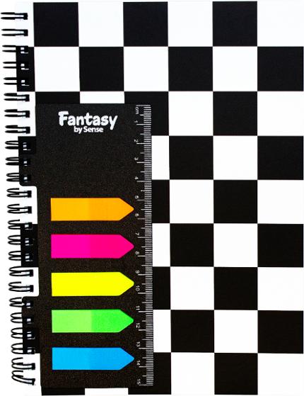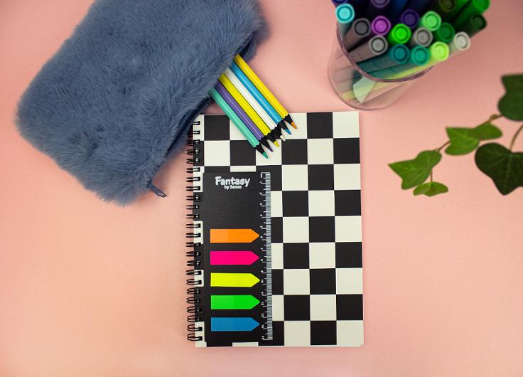 Stilrent linjerat spiralblock rutor i A5-format med extra funktioner - en 15 cm linjal samt självhäftande notisar i olika färger för att markera det som är extra viktigt. 80 sidor. Tillverkat i 70-grams FSC®-papper med råvara från hållbart skogsbruk.