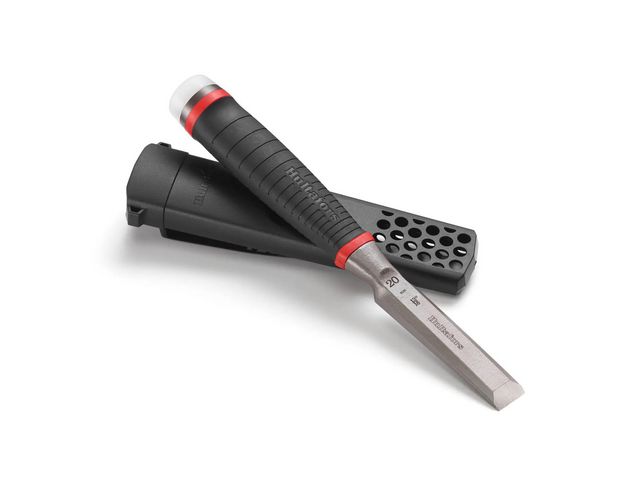 Stämjärn för uppgifter som kräver styrka och precision. Smitt i ett stycke med genomgående robust I-profil för extrem brytstyrka och för att maximera kraftöverföringen ner i arbetsstycket. Slagtåligt nylonslag som kan bytas ut när det är nedslitet. 25° eggvinkel för optimal balans mellan skärpa och hållbarhet. Hela bladet inklusive handtaget kan placeras plant mot underlaget vilket ger dig en möjlighet att skära helt parallellt längs en yta. Mått: 250mm Smidd i ett stycke 25° skärvinkel Praktiskt hölster som passar både i bälte eller på knapp Handtag av greppvänlig Santoprene