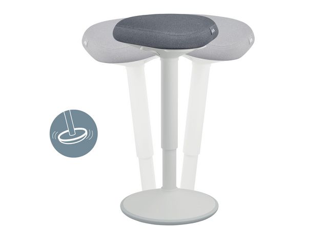 Leitz Ergo Active Ståpall har en unik komfortstol i Dual Density Foam (DDF) med en fast ergonomisk stödkärna. Den triangulära formen liknar en sadelstol och fördelar vikten jämnt över bäckenet och omges av mjuk skumdämpning för att minska trycket på lår och ben. Den 9 cm tjocka sitsen är utformad för komfort och kan användas för att luta sig mot eller sitta helt på, vilket uppmuntrar användaren att sitta mer upprätt och ger en mycket bekväm sittupplevelse likt en sittdyna. Denna höj- och sänkbara skrivbordspallen har utvecklats tillsammans med tyska Institutet för hälsa och ergonomi (IGR - Institute for Health and Ergonomics) och har utformats för att hålla dig aktiv. Pallens rundade, gungande bas uppmuntrar till aktiv rörelse genom att den svänger och gungar medan du arbetar, vilket stärker ryggen och bålen, samt förebygger värk och smärta. Smidig och enkel höjdjustering på 25 cm (57 - 82 cm) med en knapptryckning för att ställa in den perfekta höjden på ståstödet. Snygg och ergonomisk ståpall som håller dig aktiv Utformad för komfort med en 9 cm tjock sits Triangelformad unik komfortsits i Dual Density Foam (DDF) Den rundade basen uppmuntrar till gungande och svängande rörelser för att stärka rygg och mage Smidig och enkel pneumatisk höjdjustering på 25 cm (57 - 82 cm) med en knapptryckning Halkfri gummibas som gör att pallen inte glider och som skyddar ditt golv Lättviktsdesign och bärhandtag under sitsen gör den enkel att flytta Klarar en vikt på upp till 110 kg 100 % postkonsumentåtervunnet sätesöverdrag med OEKO TEX 100-certifiering (godkänt säkerhetstest för förekomst av skadliga ämnen) Snabb och enkel verktygsfri montering i några få steg, levereras med 5 års garanti