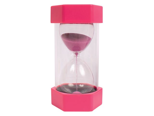 Stort timglas 2 min, rosa. Perfekt verktyg för att konkretisera tiden och tidsbegreppet för barn. Genom att erbjuda en visuell indikation av den återstående tiden hjälper det till att skapa en djupare tidsuppfattning. Lätthanterliga och smidiga att använda i inlärningsmiljöer. Bra för experiment, tidtagning, spel och lek. Mått: 16cm