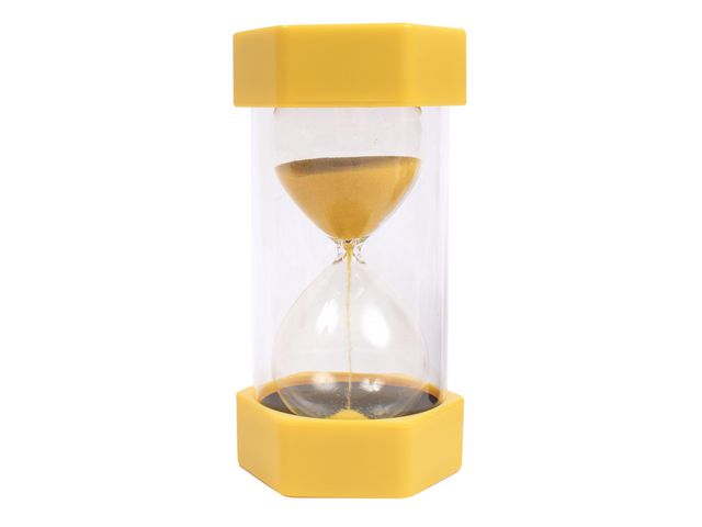 Stort timglas 3 min, gul. Perfekt verktyg för att konkretisera tiden och tidsbegreppet för barn. Genom att erbjuda en visuell indikation av den återstående tiden hjälper det till att skapa en djupare tidsuppfattning. Lätthanterliga och smidiga att använda i inlärningsmiljöer. Bra för experiment, tidtagning, spel och lek. Mått: 16cm