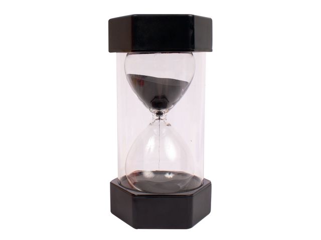 Stort timglas 30 min, svart. Perfekt verktyg för att konkretisera tiden och tidsbegreppet för barn. Genom att erbjuda en visuell indikation av den återstående tiden hjälper det till att skapa en djupare tidsuppfattning. Lätthanterliga och smidiga att använda i inlärningsmiljöer. Bra för experiment, tidtagning, spel och lek. Mått: 16cm