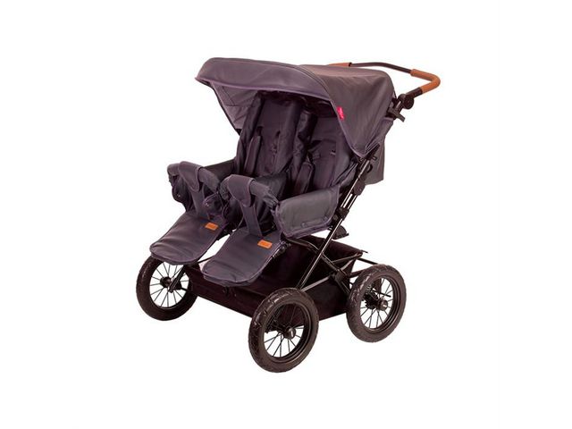 Tvillingsulky. En rymlig sulky med sufflett och varukorg. Vagnen är tillverkad i PVC-fri grå skai som är lätt att rengöra. Ryggstödet är justerbart med möjlighet till viloläge (kan dock inte fällas helt ner). Kompatibla tillbehör: Regnskydd Åkpåse PVC-fri