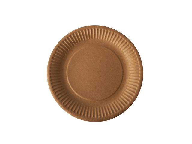 Papperstallrik som är gjord på 100% färskfiber! En komposterbar tallrik som är tillverkad på färskfiber från FSC-certifierat trä. Tallriken är helt utan tillsatser från återvunnet material, vilket innebär att tallriken inte har en plastbeläggning på sig. Format: Rund Mått: Ø 19cm Färg: Brun Material: 100% färskfiber FSC 100% Livsmedelsgodkänd