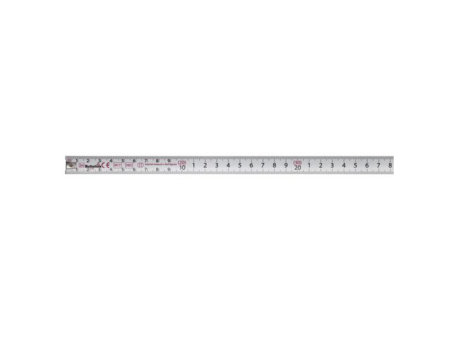 Talmeter, märkmätare, med vilken du enkelt kan mäta upp och märka ut både utvändiga och invändiga längder. Vitt stryktåligt stålband med bandbredd 16 mm och gradering i millimeter. Med kapsel i ABS-plast. Kombinerade märk- och mäteggar gör att du snabbt och enkelt kan mäta upp och märka ut både utvändiga och invändiga längder. Utvändig och invändig mätning med ritsfunktion. Diametermätning med skalan på bandets baksida. Talmetern har passarfunktion som är bra om du ska märka ut runda former. Skalan är alltid låst i normalläge. Mättungan är lätt att fälla ut och in med den greppvänliga släden. Längd: 2 meter EU klass II certifierad Invändig mätning Tillåter diametermätning