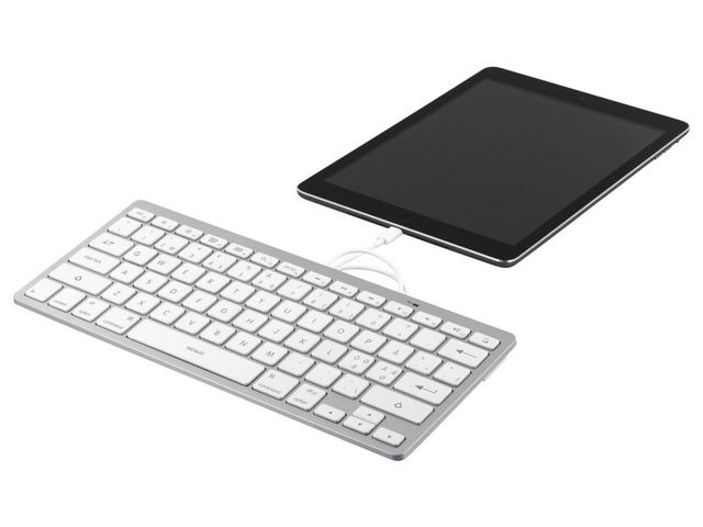 Mini tangentbord i kompakt storlek med trådad USB-C anslutning för iPad/Mac/iPhone Nordisk layout med lågprofil sax-brytare och dedikerade media tangenter anpassade för iPad, iPhone och Mac. För iPad, Mac och iPhone 1m trådad USB-C anslutning Lågprofil sax-brytare Dedikerade media tangenter Mått (WxDxH): 256 x 120 x 23 mm Vikt: ca 302 g