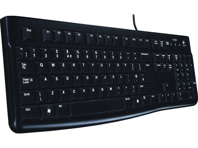 Skriv med enastående kvalitet med tangentbordet K120 med låg profil från Logitech® Logitech® K120 är utrustat med F-tangenter i normalstorlek, en elegant låg profil som gör det bekvämt att använda, tåliga tangenter som är utformade för att hålla och ger en enastående smidig och tyst skrivupplevelse. De lättlästa tangenterna framträder tydligt mot det svarta tangentbordet och tål upp till 10 miljoner nedtryckningar utan att slitas. Använd de praktiska ställbara benen för att sänka eller höja enheten efter önskemål. För att ställa in tangentbordet K120 från Logitech® ansluter du bara till USB-porten på den bärbara datorn, netbook-datorn eller stationära datorn och börjar skriva. Logitech® K120 standardtangentbord Slimmad design som ger bekväm och tyst skrivning Normalstora F-tangenter Tunn design som gör att du kan hålla händerna i en neutral position Färg: svart med vita tecken i fetstil Lättlästa tangenter Hållbara tangenter som tål upp till 10 miljoner nedtryckningar Ställbara ben som gör att du kan ställa in önskad höjd USB plug and play-inställning för enkel installation Storlek: 18 x 3 x 47 cm Vikt: 0,75 kg