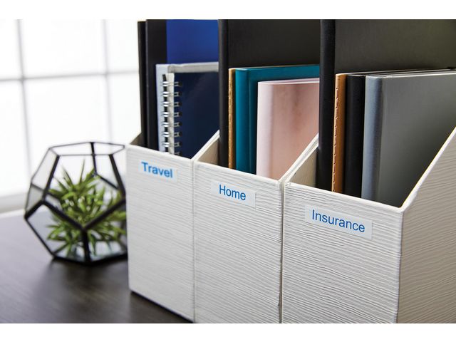 DYMO D1-etiketter erbjuder den prestanda och omväxling du behöver för alla typer av märkning, både inomhus, utomhus, på kontoret, i verkstaden, i butiken eller någon annanstans. Etikettkassetten DYMO® D1 på 9 mm ger snygga, skräddarsydda etiketter med blå text på vit botten som passar perfekt för användning både inomhus och utomhus. D1-tejp med text som har skrivits ut med termisk överföringsteknik – varken bläck eller toner behövs. Dessa tåliga och hållbara etiketter är vattentåliga, UV-resistenta och de tål temperaturer mellan -18 och 90 grader. De fäster på nästan alla släta och rena ytor inklusive plast, papper, metall, trä och glas. Den självhäftande polyestertejpen är också löstagbar för kortsiktig märkning utan limrester. Kompatibla med: DYMO LabelMANAGER 120P, 210D, 210D, 210D satsfodral, 220P, 220P sats, 220P satsfodral, 350D, 450D, LabelPOINT 250, 250 satsfodral, 350, 350 satsfodral Självhäftande polyestertejp för snabb och enkel applicering Färg: Blå text på vit botten Inkluderar: 1 rulle Mått: 9 mm x 7 m Etiketterna kan tas bort utan att lämna kvar limrester Fäster på nästan alla rena och släta ytor inklusive plast, papper, metall, trä och glas Ta enkelt bort skyddsfilmen för snabb och enkel applicering Vattentåligt UV-resistent Temperaturbeständig Består till 50% återvunnet material