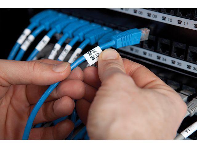 Etiketterna fäster ordentligt på sladdar, kablar, krökta ytor och ytor med struktur. Slitstarkt material tål skador när det dras genom trånga utrymmen eller rörledningar. Följer RoHS DYMO® industriella flexibla nylonetiketter på 19 mm fäster permanent på strukturerade ytor och kablar. De perfekta etiketterna för användning både inomhus och utomhus. De är slitstarka, UV-resistenta och tål temperaturer mellan -10 och 80 °C. Etiketterna är utformade för att kunna dras genom trånga utrymmen utan att gå sönder. Enkla att applicera. Dra bara av etikettens skyddsfilm och fäst den där du vill. Ett måste vid bygg- eller kabelhantering. Märk utrustningen för enkel identifiering. UL-godkänd komponent till UL 969, och i enlighet med RoHS. Kompatibla med: DYMO Rhino 4200, 6000, 6000 sats med hård väska, RhinoPRO 5000 Permanent självhäftande Fäster ordentligt på sladdar, kablar, krökta ytor och ytor med struktur Färg: Svart text på gul botten Mått: 19 mm x 3,5 m Slitstarkt Vattentålig UV-resistent Följer RoHS Värmeresistent mellan -10 och 80 °C Snabb och enkel att applicera