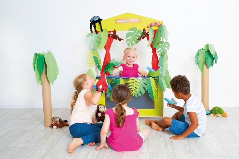 En flexibel möbel som snabbt förvandlas till dockteater, marknadsstånd, scen eller kiosk. Skapa oändliga möjligheter till lek med en inspirerande teater! Här kan barnen utveckla sin fantasi, kommunikation och samarbetsförmåga genom levande rollspel. Teatern har en klassisk röd ridå och en griffeltavla på framsidan, där barnen kan skriva dagens föreställning, öppettider eller lekens tema – perfekt för både teater och butiklek. Som dockteater kan barnen framföra egna pjäser, byta roller och hitta på berättelser. På baksidan finns dessutom ett praktiskt förvaringsnät för handdockor, rekvisita eller leksaksmat – allt samlat på ett ställe! Som marknadsstånd eller kiosk får leken en matematisk dimension där barnen övar på att räkna, köpa, sälja och förstå värde på ett lekfullt sätt. Produkten levereras omonterad, men monteras mycket enkelt till en stabil teater som står stadigt i många år framöver. Mått: 75 x 120 x 41 cm Material: plywood / solid wood / MDF PVC-fri Rekommenderad ålder: från 3 år CE
