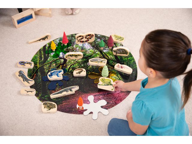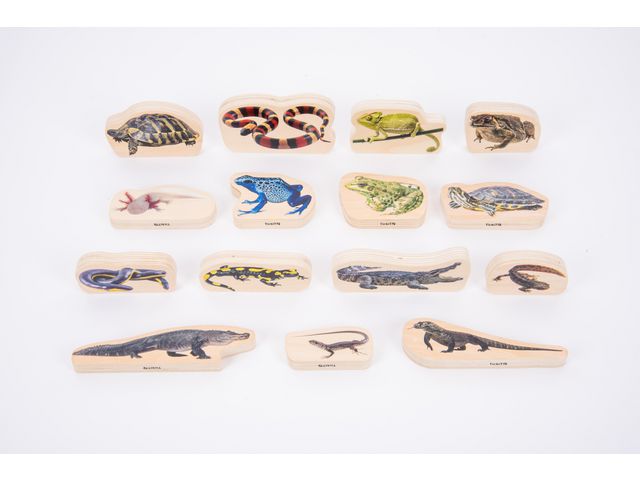 Tjocka och lätta bildblock i björkplywood, färgtryckta på båda sidor med verkliga bilder på femton reptiler och amfibier. Perfekta för barn att engagera sig i fantasifull lek, utveckla sina beskrivande språkfärdigheter och lära sig om djur från hela världen. De robusta träblocken är mjuka att röra vid och lätta för små barn att hantera, stå upprätt och stapla. De realistiska bilderna kommer att möjliggöra för yngre barn att lära sig namnen och egenskaperna hos de olika djuren från hela världen, och kommer att uppmuntra äldre barn att förstå mer om dessa fascinerande varelser, visualisera dem för berättande eller kreativt skrivande och diskutera miljöfrågor. Inkluderar färgidentifieringsguide på 8 språk. Stödjer följande inlärningsområden: Personlig utveckling - samarbetslek Fysisk utveckling - motorik Kommunikation & Språk - beskrivande språk Uttrycksfull konst & Design - fantasifull lek Kommunikation & Språk - resonemang Förståelse av världen - världen Mått: 96mm x 62mm x 14mm Material: Björkplywood Rekommenderad ålder: från 0 år FSC 100%