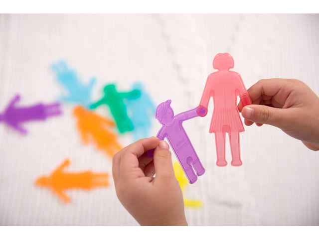 Tillverkade av mjuk silikon består dessa realistiska länkande människor av 6 familjer med 6 familjemedlemmar - var och en tillverkad av en annan transparent färg (vilket gör varje karaktär helt annorlunda än de andra) som kan länkas ihop genom sina händer. Karaktärerna inkluderar morfar och mormor, mamma och pappa samt flicka och pojke. Formade med realistiska drag och i proportion kan de användas över läroplanen. Länkande Människor är en utmärkt resurs för berättande, språkutveckling, matematisk sortering, mönsterskapande och för deras attribut (större/mindre, längre/kortare, äldre/yngre). Inom vetenskapen kan de användas för att hjälpa barn att förstå livscykler samt på en ljuslåda för att se färgblandning eller effekten när de speglas i en spegel. De är bra för att hjälpa barn att utveckla finmotorik och i lek med små världar. Eftersom de är gjorda av silikon är de starka och lätt rengöras efter användning i tvålvatten eller till och med i diskmaskinen utan skada. Setet levereras med en informationsblad med idéer på 8 språk för användning över läroplanen. Stödjer följande lärandeområden: Personlig utveckling - PSHE Fysisk utveckling - motoriska färdigheter Matematik - räkning & sortering Förståelse av världen - färg Uttrycksfulla konst & design - fantasifull lek Största karaktär: 100mm Material: Silikon