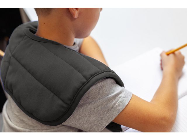 Ergonomisk tyngdkudde anpassad för nacke och axlar som bidrar till lugn och trygghet. Nackkudden är ett sensomotoriskt hjälpmedel som stimulerar beröringssinnet och ger en avslappnande känsla. Tyngden på axlar och nacke kan hjälpa eleven att behålla koncentrationen och skapa en ökad studiero. Mått: 31 x 47cm Vikt: 1kg Oeko-Tex Standard 100: 19.HCN98718 HOHENSTEIN. www.oeko-tex.com