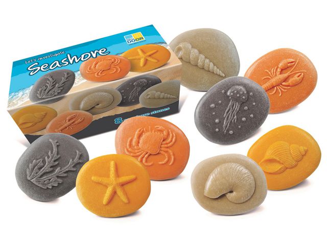 Transporteras till havet och utforska den lockande floran och faunan på stranden med dessa taktila stenar. Gjorda för användning i sin naturliga miljö, i vatten och sand, de är perfekta för utomhusupptäckt och undersökande lek, och kan lätt rengöras för nästa äventyr! Varför inte ta med dem på en strandresa och jämföra med några riktiga naturskatter? De kan användas för att skapa små världsstenpooler, för att göra avtryck i lekdegen. En fantasifull aktivitet där barnen kan lära sig mer om en av de rikaste och mest mångsidiga miljöerna på planeten. Setet innehåller åtta stenar: skruvskal, krabba, maneter, hummer, nautilusskal, tång, sjöstjärna och snäckskal Mått: 85mm Rekommenderad ålder: från 2 år