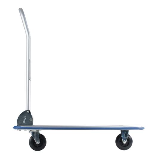 Mångsidig, stabil och lätthanterlig transportvagn som dessutom är hopfällbar. Praktisk hopfällbar transportvagn som hjälper dig att enkelt flytta olika typer av laster. Oavsett om du befinner dig på lager, verkstad, butik eller hemma. Den robusta ramen i stål ger både stabilitet och lång hållbarhet. Vagnen kan fällas ihop när den inte används, vilket gör den enkel att förvara. Det bekväma körhandtaget och de två styrbara hjulen gör den lätt att manövrera även i trånga utrymmen. Plattformen är robust och stabil och passar perfekt för transport av till exempel dryckeslådor, paket, väskor, verktyg och andra föremål. Den har gott om utrymme för att flytta gods på ett säkert och effektivt sätt. Två av de fyra hjulen är styrbara, vilket ger dig utmärkt rörlighet och kontroll. Det gör vagnen till ett oumbärligt hjälpmedel i både arbete och vardag. Material: stål Max kapacitet: 150 kg Vikt: 7,2 kg Mått: 380 x 520 x 260 mm Hjultyp: 2 svängbara, 2 fasta