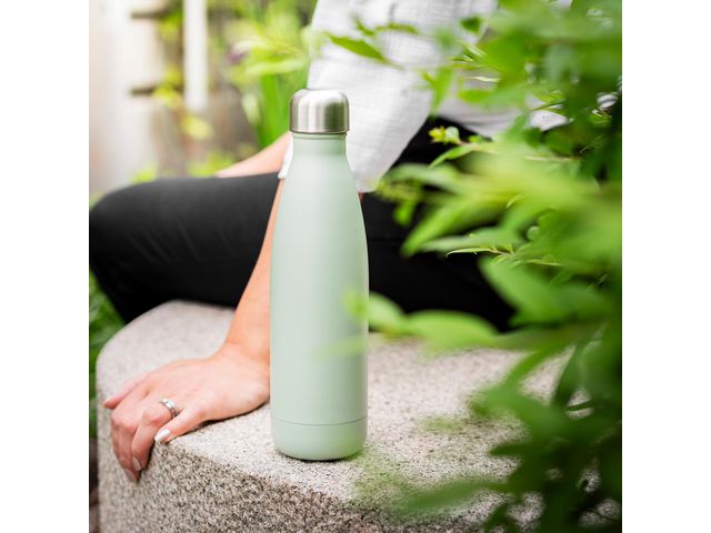 En designad vacuumisolerad vattenflaska gjord av högklassigt rostfritt stål. Håller din dryck kall upp till 24 timmar och varm upp till 12 timmar. Flaskans smala öppning är lätt att dricka ur utan onödigt spill, och passar perfekt för normalstora isbitar. Använd vattenflaskan på jobbet, hemma eller ta med till gymmet för fräscht och kallt vatten under hela dagen eller träningspasset. Mått: 7 x 7 x 26cm Volym: 500ml Material: rostfritt stål Skötselråd: handdisk