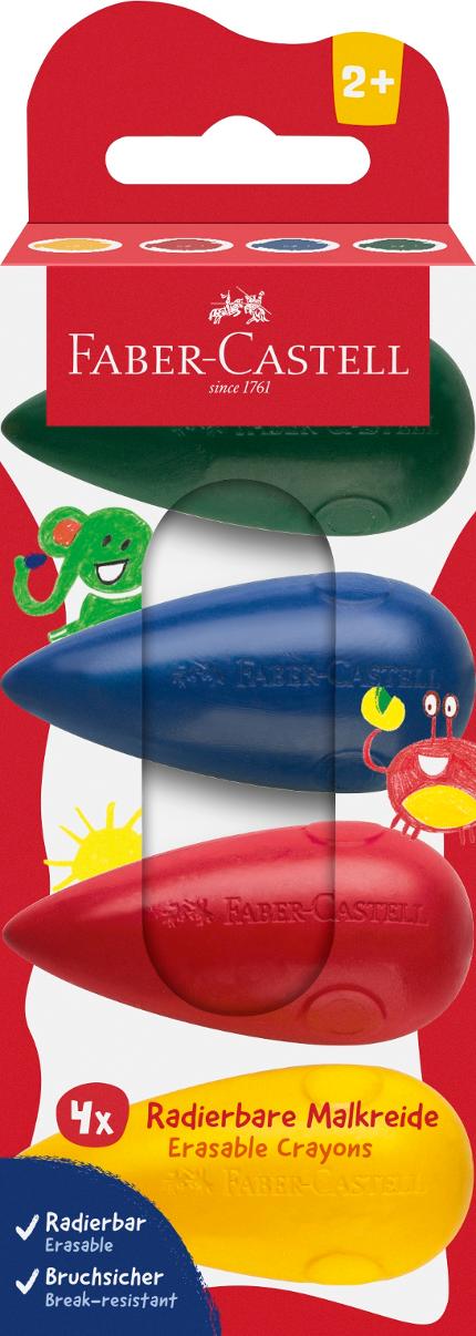 Droppformade och tåliga barnkritor som passar utmärkt till små barnhänder. Idealiskt från 3 år. Formen underlättar övergången från knytnävsgrepp till fyrfingersgreppet och de 4 färgerna gör det roligt att rita. Kritorna är raderbara och färgar inte av sig på händerna. Förpackning kan återanvändas i förvaringssyfte. Material: vaxkrita PVC-fri CE-märkt Varning. Lämpar sig inte för barn under 3 år