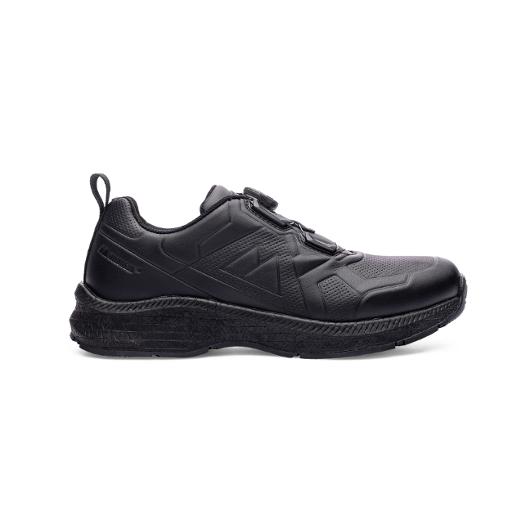 Sportig yrkessko för butikspersonal, väktare och andra serviceyrken Paradox X Work Shoe är en modern arbetssko som kombinerar sportig känsla med arbetsanpassad funktion. Skon är konstruerad för dig som går och står mycket, med en stötdämpande ETPU-mellansula som återger över 58 % av energin i varje steg. Den halksäkra yttersulan ger tryggt grepp på olika underlag, och det fuktabsorberande fodret håller fötterna torra under hela arbetsdagen. Material ovandel: Mikrofiber Material foder: Bomull, mikrofiber Material mellansula: expanderad termoplastisk polyuretan Material yttersula: Nitrilgummi EN ISO 20347:2022 ESD, HRO Passform: Wide Utrustad med BOA